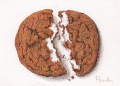 This one is molasses with creme filling. Its very soft and squishy (the cookie, that is). Its the same paper size and materials as the last drawing, but the cookie is drawn much smaller than in real life.