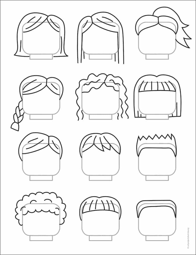 Here you’ll find an easy step-by-step tutorial for how to draw a Lego Self Portrait Tutorial Video and a Lego Self Portrait Coloring Page. Shading makes the shapes look 3D.