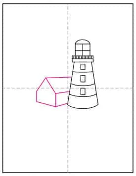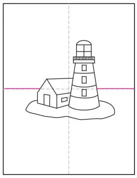 When children learn how to draw a lighthouse, it can be the perfect starting point for imagining life by the sea. This composition includes a cozy little house off to the side, a small island setting, and plenty of open space for students to add their own details—boats in the distance, rolling waves, or even a dramatic stormy sky.