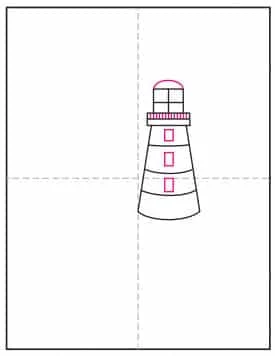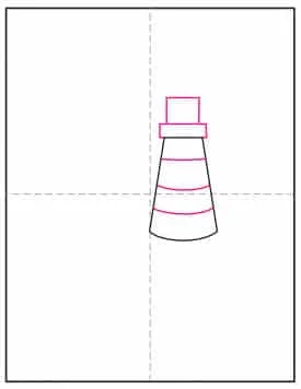 This lighthouse drawing is built from simple shapes, but it also sneaks in an important lesson about dimension. If students want their lighthouse to look cone-shaped instead of flat, the stripes can’t be perfectly straight—they need to curve slightly around the form. It’s a small detail, but it makes a big difference, and it’s a great way to help students see how a few thoughtful lines can turn a basic shape into something that feels real.