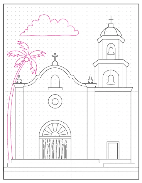 If you want to learn how to draw a mission, the Mission San Juan Capistrano is a good place to start. It has a beautiful simplicity to it.