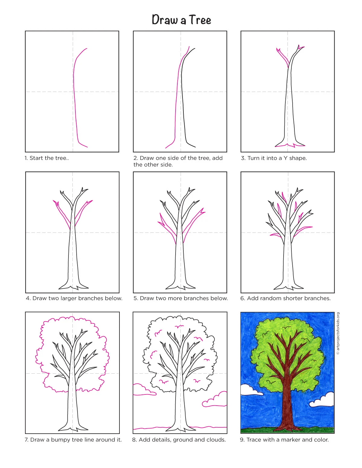 Below you’ll find an easy step-by-step tutorial for how to draw a Tree Tutorial Video. This one helps students see how to draw some more realistic looking branches.