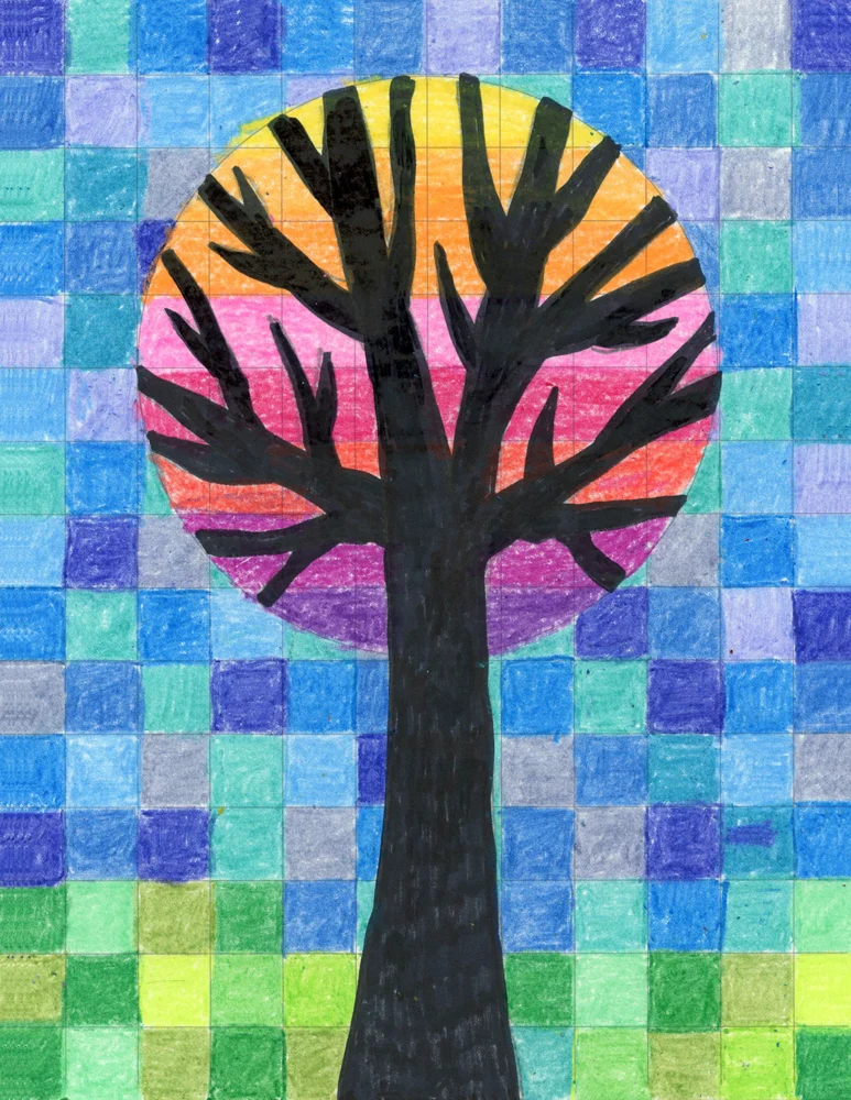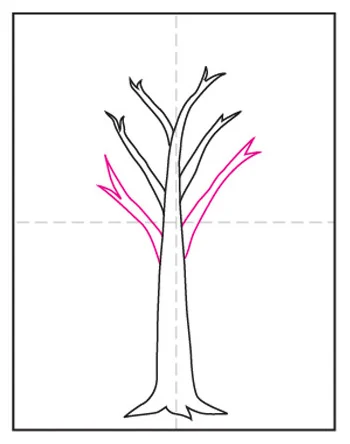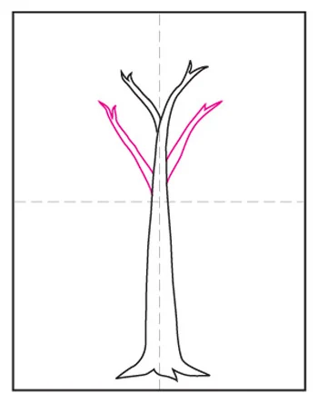 Most students start out drawing a tree with a rectangle trunk and cloud shape on top. That’s great when they’re young, and just starting to see shapes. The next step though is to see more of the branch system that they have. This tutorial is made to show students how there is a randomness to the branches, but also a kind of formula to follow too. Adding more detail to drawings will always help them become better at it!