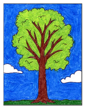 When it comes to learning how to draw a tree, drawing from real life is not really practical or even possible for most elementary art students. Even if they could go outside, not everyone has a nice view of a mature tree, standing all by itself somewhere, that they can sit down and draw. Not to worry though, there are lots of features that trees have in common, so once students learn more about them, they can start to draw more realistic trees all on their own.