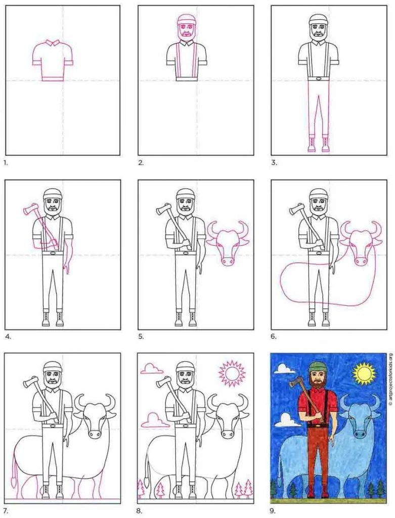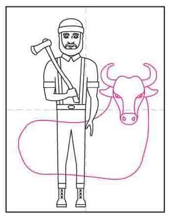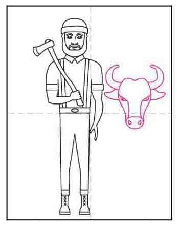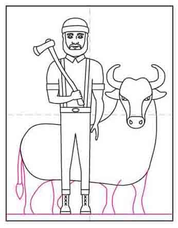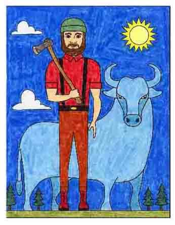 Paul Bunyan was a giant lumberjack and folk hero in American and Canadian folklore. His exploits revolve around the tall tales of his superhuman labors, and he is customarily accompanied by Babe the Blue Ox. Now students that are reading about the exploits of the two, have an easy way to draw the both of them in a few simple steps. Paul is decked out in his lumberjack clothes, and Babe is right behind with her strong, muscular frame.