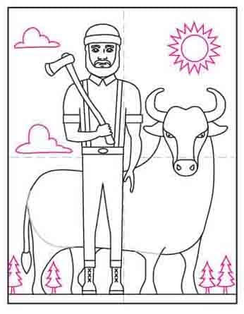 Below you’ll find an easy step-by-step tutorial for how to draw a Paul Bunyan and a Paul Bunyan Coloring Page. It’s the perfect aid for a special book report.