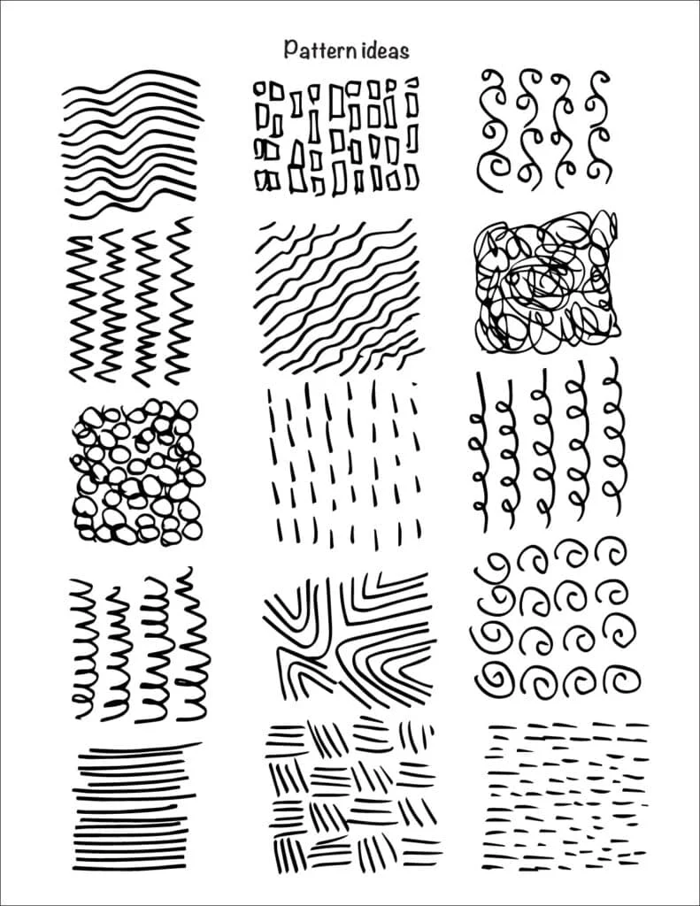 When the face is drawn and traced, then it’s time to fill in the background with lots and lots of patterns. To keep your students inspired to add a variety, there’s an extra sheet in the download which includes some pattern ideas. Adding lots of detail takes time, but it can mean the difference between a drawing looking “nice” or “NICE!”