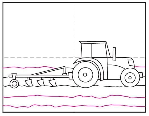 Many students may have drawn vehicles before, but this tractor includes a bit more detail, and the cultivator will probably be something new for most of them to try. That extra detail gives students a chance to slow down, look carefully, and build their drawing step by step.