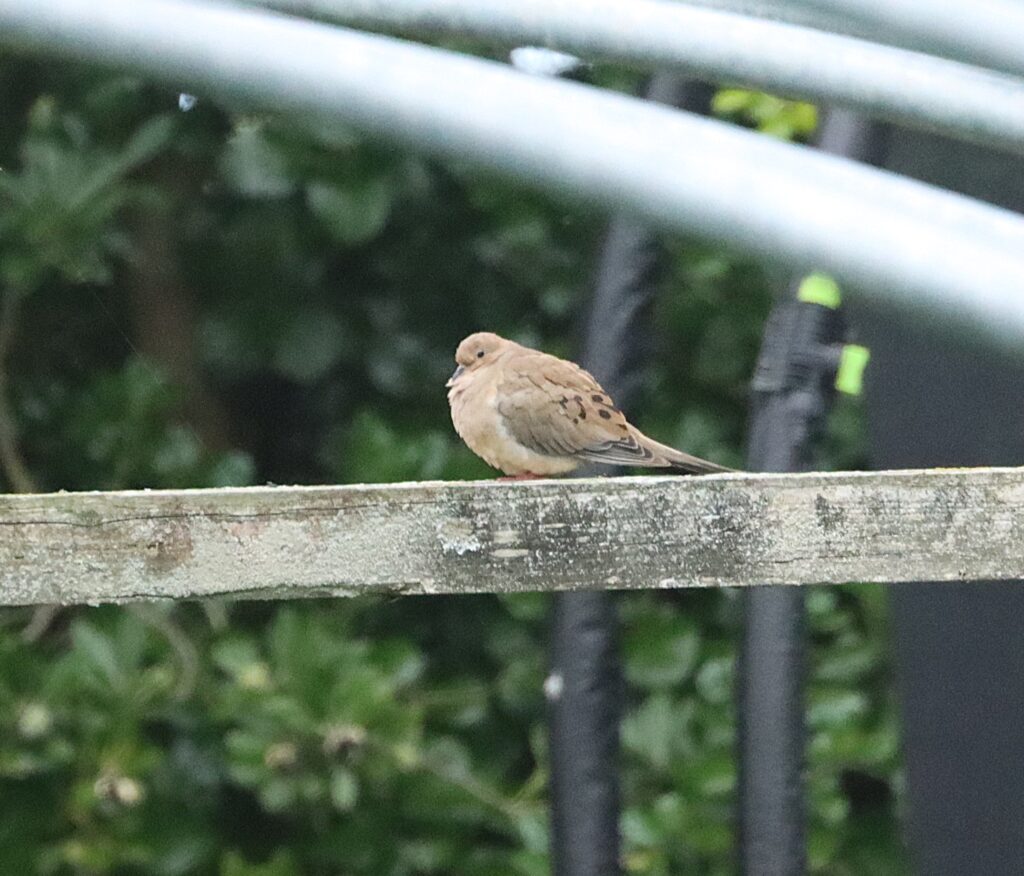 Saímos do barco e logo nos juntamos a uma pequena multidão organizada em uma área especialmente organizada na Lower Town Farm. Depois do que pareceu uma eternidade, alguém encontrou o pássaro sentado em uma parede, mas, de forma frustrante, ele voltou para os arbustos de pittisporum! Eventualmente, ele desistiu e teve um ótimo desempenho para a agora exultante multidão de observadores de pássaros! POMBA DE LUTO estava na nossa lista!