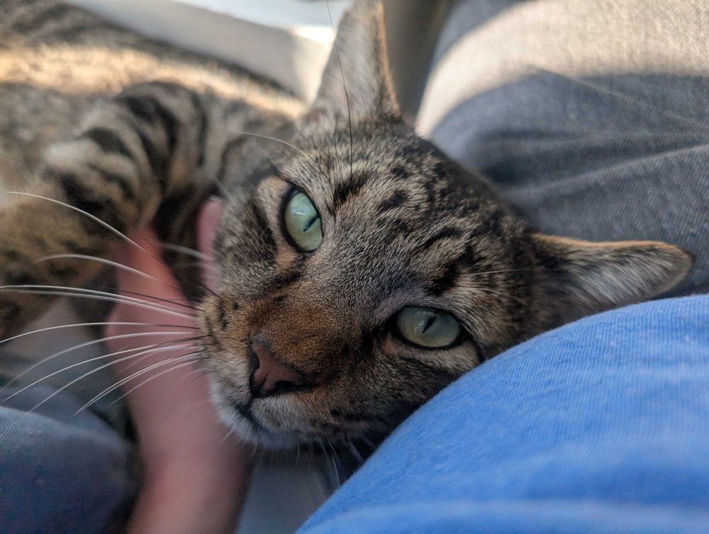 Um modesto gato malhado marrom com salpicos de branco que levou algumas semanas para reunir coragem para se misturar aos outros gatos, Cadero rapidamente se revelou um afável encantador e ansioso pelo contato gentil com as pessoas. Ele é o tipo de cara que faz contato visual com você do outro lado da sala e faz você se sentir como se fosse a única pessoa no planeta – um encantador discreto que conquistou meu coração muito, muito rapidamente.